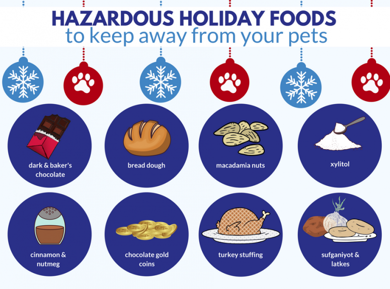 Below are some popular holiday foods that are poisonous to animals. Be careful what foods you leave out or share with your pets.