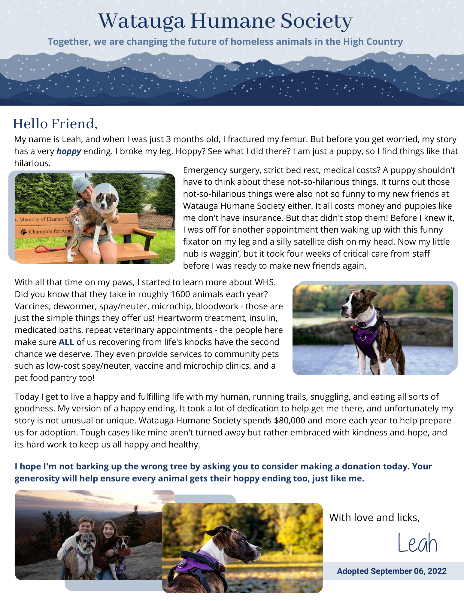 Click HERE to donate today to help animals like Leah!!